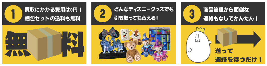 そんなとき、リサイクルショップに持ち込んでも二束三文だったり、フリマアプリは梱包や発送が面倒だったりしませんか。そんなディズニーファンの強い味方となるのが、宅配買取専門店の「ジャニキング」です。